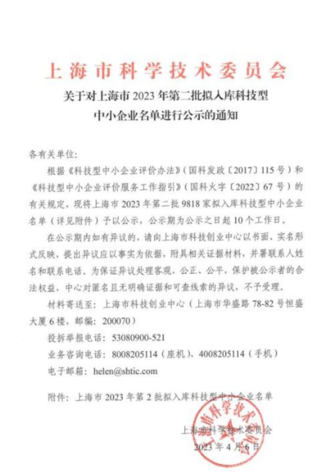 近日,上海市科学技术委员会发布了《上海市2023年第二批入库科技型中小企业名单公告》。根据《科技型中小企业评价办法》(国科发政〔2017〕115号)和《科技型中小企业评价服务工作指引》(国科火字〔2022〕67号)的有关规定,上海羽山科技有限公司(羽山数据)成功入库”2023年第二批科技型中小企业”名单!